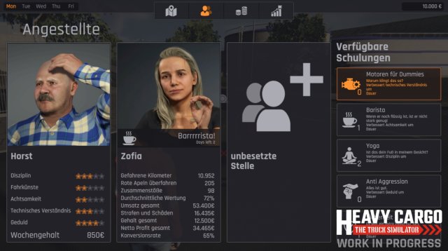 Der Wirtschaftsmodus generiert euch 954 mögliche Missionspfade und damit ca. 10.000 Missionen durch unterschiedliche Ladungen, was euch genug Spielspaß geben sollte. Mit dem Wirtschaftsmodus könnt ihr entsprechend bis zu 3 Angestellte einstellen und mit diesen Mitarbeitern könnt ihr auch Missionen zuweisen, wenn diese nicht als Hilfskräfte benötigt werden.