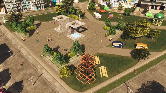 Mit Cities: Skylines – Plazas and Promenades können Spieler ihr Traumerlebnis zu Fuß aufbauen und verschiedene Bezirksoptionen und städtische Dienstleistungsgebäude hinzufügen. Lärm und Luftverschmutzung werden beseitigt und Fußgängerzonen, autofreie Zonen und moderne Plätze hinzugefügt – die Bürger werden begeistert sein, in einer begehbaren Stadt zu leben.