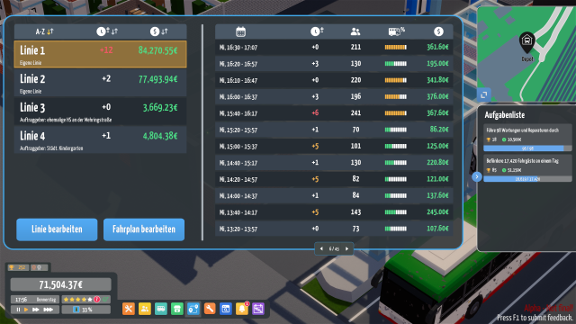 - Verfolgen Sie Ihre Busse live mit realistischem Fahrgastaufkommen und Routenplan