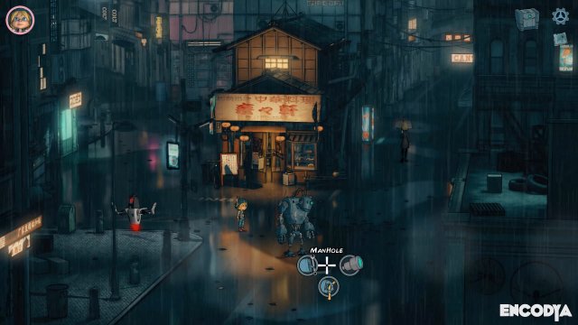 In dem Spiel spielen wir Tina - eine 9-jährige Waise - lebt mit SAM-53 - ihrem großen, ungeschickten Roboterwächter - in einer provisorischen Dachunterkunft in Neo-Berlin - einer dunklen, von Konzernen kontrollierten Megalopolis.