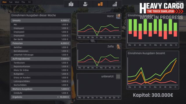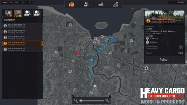 Der Wirtschaftsmodus generiert euch 954 mögliche Missionspfade und damit ca. 10.000 Missionen durch unterschiedliche Ladungen, was euch genug Spielspaß geben sollte. Mit dem Wirtschaftsmodus könnt ihr entsprechend bis zu 3 Angestellte einstellen und mit diesen Mitarbeitern könnt ihr auch Missionen zuweisen, wenn diese nicht als Hilfskräfte benötigt werden.