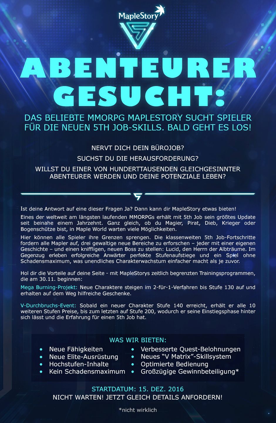- Breakthrough V Event: Sobald ein Charakter Level 140 erreicht, wird er weiterhin Preise für jedes zehnte erreichte Level erhalten. Der ultimative Preis wartet bei Level 200 und erlaubt es Spielern die Erfahrungspunkte zu erhalten, die nötig sind, um den fünften Job zu bekommen.
