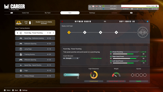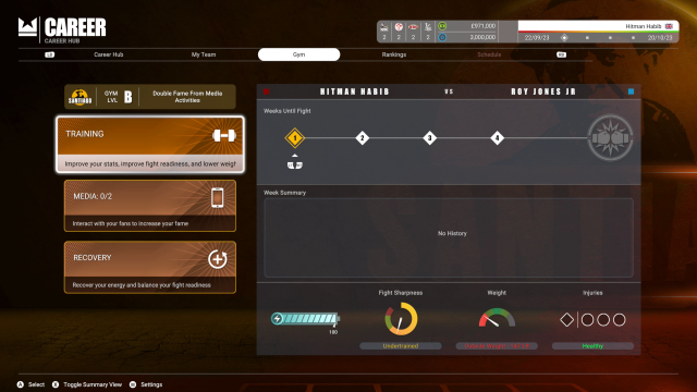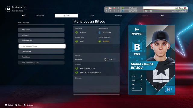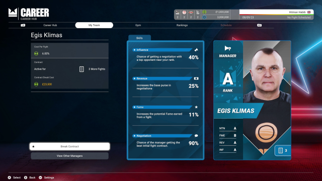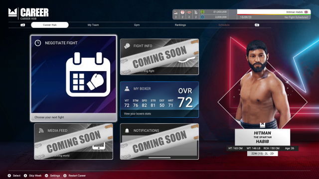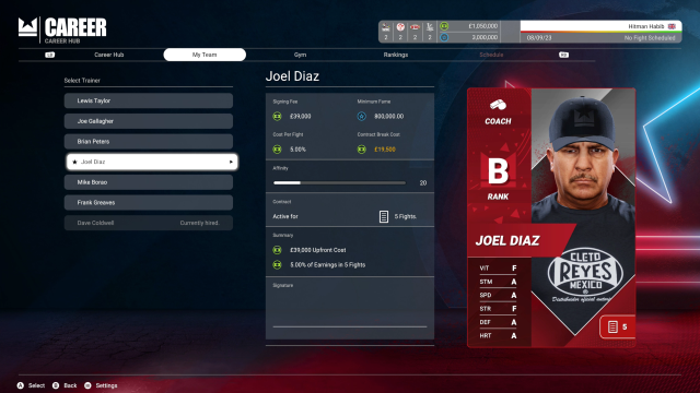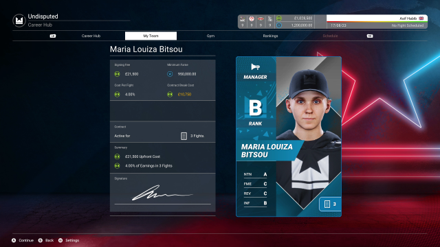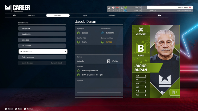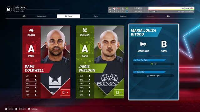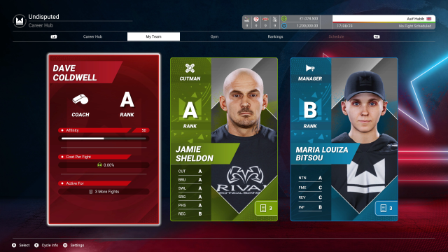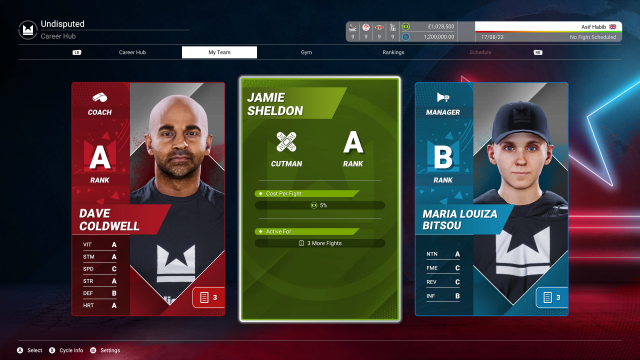 - Stelle dein Team zusammen. Gestalte deine Zukunft. Stelle das beste Team aus Manager, Cutman und Trainer zusammen, um deine Fähigkeiten weiterzuentwickeln, Geld, Ruhm, Sympathie und Erfahrung zu verdienen, während du aufsteigst.
