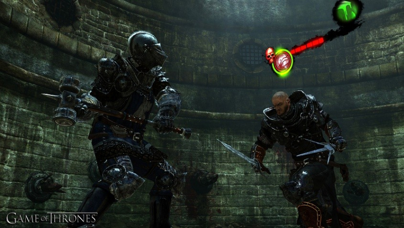 nett gestaltet, so muss man beispielsweise in einer Untergrundarena gegen verschiedene Gegner antreten, oder im Körper des Hundes von Nachtwache Mors vergrabenes Diebesgut ausfindig machen. Wie es die geringe Anzahl der Nebenquest bereits vermuten lässt, stellt uns Game of Thrones nicht einer offenen Welt entgegen, sondern sperrt uns in vorgegebenen Korridoren ein. Außerhalb der vorgegebenen Pfade gibt es außer matschigen Texturen keine Geheimnisse zu entdecken. Auch fühlt man sich sehr eingeengt in der Spielwelt, da selbst die wenigen Außenareale so gut wie keine Weitsicht bieten, dadurch fühlt man sich selbst im Wald genauso eingesperrt wie in den Kerkern eines Schlosses. Die Grafik ist sehr altbacken und viel zu detailarm um mit aktuellen Spielen verglichen werden zu können. Selbst das Aussehen der Charakter sieht nicht besser aus, wie vor fünf Jahren. Manche Modelle wurden hierbei sogar mehrmals im Spiel recycelt.