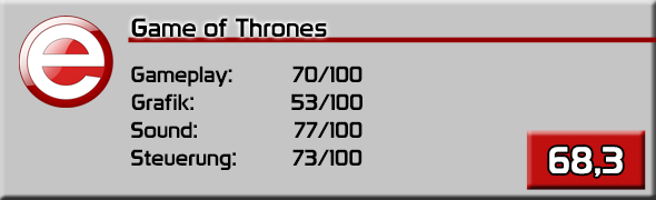 Game of Thrones setzt ausschließlich auf die Geschichte und lässt das Gameplay und die Inszenierung völlig links liegen. Außerdem ist die Spielwelt für ein Rollenspiel viel zu eingeschränkt. Nur wer eine ordentliche Fantasygeschichte sucht und über viele Gameplaymacken hinwegsehen kann, sollte sich an diese Linzenzumsetzung heranwagen.