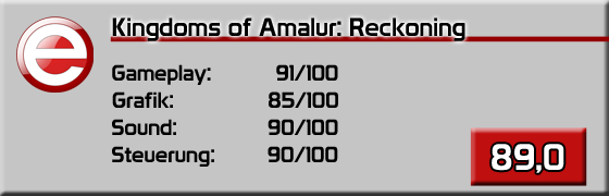 Im großen und ganzen ist das Spiel Kingdoms of Amalur: Rackoning ein gutes Spiel und liefert eine gestochen scharfe Grafik, die ab und zu ein paar Grafikfehler aufweisen kann. Mit dem intelligenten Dialog-Modus bietet das Spiel uns nicht eine gewöhnliche Story, sondern das, dass wir den Spielverlauf ändern können. Damit ist natürlich das Quest-System ein guter Start in die neue Serie. Durch annehmen von mehreren Quests hat man die Möglichkeit alles zu suchen und zu bearbeiten was man möchte, denn man ist nicht an eine feste Story gebunden, was auch ein paar Nachteile mit sich bringen kann. Steuerungstechnisch ist es eine einwandfreie Steuerung, die kleine Fehler aufweisen kann und einige Belegungen sind nicht gerade gut gewählt, aber damit kann man leben.