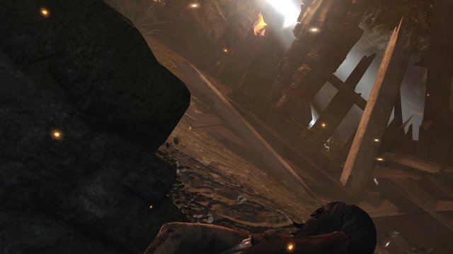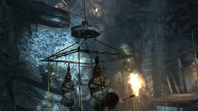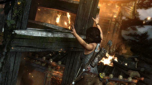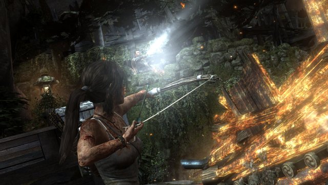Motivation fehlt euch durch die Story, während ihr in strikt linearer Weise die Insel erkundet (gähn). Abwechselnd gibt’s Actiongeladene Abschnitte und weitläufige Gebiete. In den Action-Abschnitten zeigt das neue Tomb Raider, wie es rund geht: Ihr rennt mit Lara durch explodierende Tempelanlagen, rutscht die Stromschnellen eines Baches abwärts oder kracht durch Wolken aus Sägespänen, während um euch herum das ein oder andere Flugzeug ein ganzes Dorf zerlegt. Das sieht zwar klasse aus, allerdings ist es Gameplaytechnisch so interessant wie der nächste Schlaf. Ein Knöpfchen hier, Sticks bewegen dort. Dafür erwartet euch ein exzellenter Kinofilm der besonderen Art.
