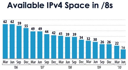 "Angesichts des aktuellen Verbrauchs werden die letzten fünf Blöcke Anfang 2011 an die RIRs vergeben".