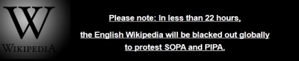 Das der SOPA (Stop Online Piracy Act) auf Unmut bei den meisten stößt ist schon länger bekannt, doch nun protestetieren große Internetseiten am morgigen Tag indem sie ihr Online-Angebot vom Netz nehmen. Wer hätte einmal gedacht, dass eine schon nicht mehr wezudenkende Webseite diesen Schritt wagt, nein wir reden hier nicht von Google. Die englische Wikipedia-Ausgabe wird ab morgen für 24 Stunden nicht mehr erreichbar sein, jediglich Kontaktadressen zur Beschwerdeneinreichungen bei den US-Behörden sind auf der dann schwarzen Seite vorzufinden.