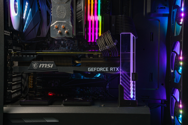 Für herkömmliche PCI-Express-Steckplätze auf Mainboards bedeutet das hohe Gewicht eine teils gefährliche, zusätzliche Belastung. Eine GPU-Halterung verleiht Grafikkarten an den gewichtskritischen Ansatzpunkten zusätzlichen Halt, um den Einschub auf der Hauptplatine zu schützen.