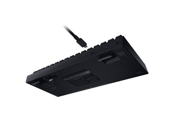 Die BlackWidow V3 Mini HyperSpeed ist auch Bluetooth-kompatibel. So kann man nahtlos zwischen bis zu drei verbundenen Geräten wechseln. Ein USB-C-Kabel komplettiert die Verbindungsoptionen und erlaubt es, die Tastatur während der Benutzung zu laden – mit einer kompletten Akkuladung hält sie bis zu 200 Stunden.