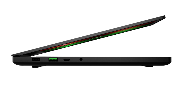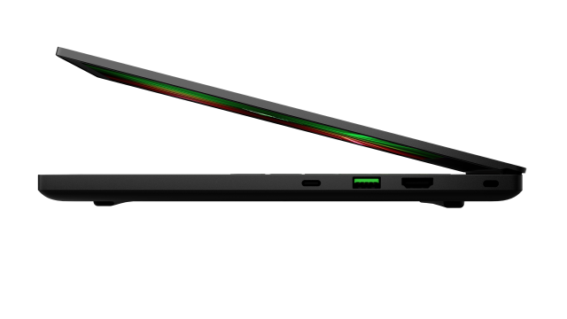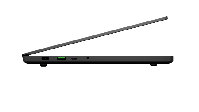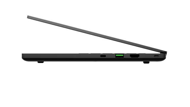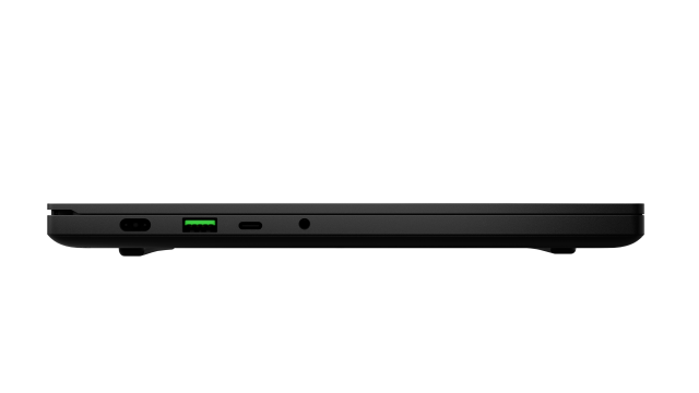 An der Seite der Tastatur sind Lautsprecher angebracht, die über die THX Spatial Audio-Technologie für Spiele, Filme und Musik optimiert werden können. An der Seite des Blade 14 finden sich zahlreiche Anschlüsse, darunter zwei USB 3.2 Gen 2 Type-C mit der Möglichkeit zum Laden, zwei USB 3.2 Gen 2 Type-A zum Verbinden älterer Geräte, HDMI 2.1 zum Anschluss an einen Monitor in Konferenzräumen und ein 3.5 mm Anschluss, wenn man immersiven 3D-Sound mit THX Spatial Audio genießen möchte.