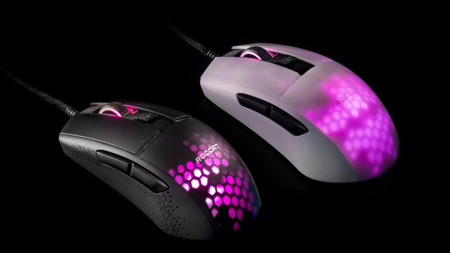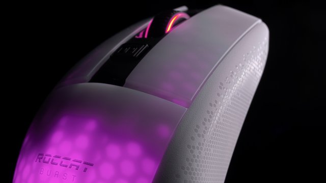 Die Burst Pro ist auch die erste Maus mit einem leichten Wabendesign, das mit einer soliden, durchsichtigen Deckschicht überzogen ist und UV-beschichteten Tasten für zusätzliche Haltbarkeit und Schutz vor Witterungseinflüssen. Einen weiteren Fokus setzte ROCCAT auf die Seitenflächen der Maus, die eine glänzende hexagonale Textur bekamen und in Kombination mit den UV-beschichteten Tasten für perfekten Grip sorgen. Das neue Design setzt ROCCATs beeindruckende intelligente AIMO-Beleuchtung brillant in Szene und bringt gleichzeitig das Gewicht der Maus auf 68 Gramm. Die Burst Pro wird in den Farben Ash-Black und Arctic-White erhältlich sein.