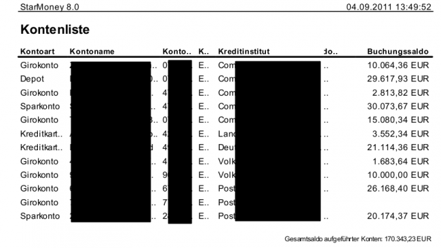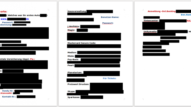- Bankunterlagen (unter anderem auch die kompletten Daten eines Home-Banking-Accounts, inklusive Passwort)
